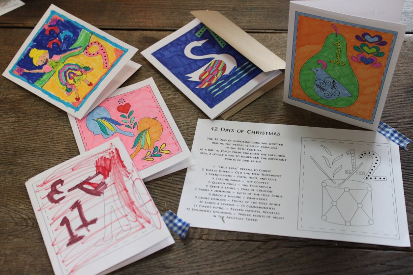 We are finally here: the waiting is over, our Savior has come, and we celebrate! The season of Christmastide gives us 12 days in which to fully feast and remember the King’s birth. Here are a few suggestions for various activities and the significance of each day during Christmastide, from Full Homely Divinity. One idea is to share the true meaning of the 12 days of Christmas with friends and family. Did you know that in 16th century England, the song was used to teach children their Roman Catholic catechism in code? Read more about that history here. I designed these 12 Days of Christmas Cards with these things in mind. Use them to color yourself, or have your children color them to send to friends and family this Christmas season. You could also make them into ornaments to add to your tree. Merry Christmas, from all of us at The Homely Hours.