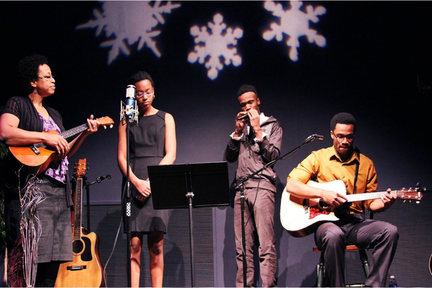 The Baughams are a Christ the King family who are always blessing our church through their musical talents. Pam, the mother, is a part of Sweet Betsy, a local folk duo, and David (David Baugham Music ) won several large Dayton competitions that included a cd recording and release party (as pictured above. Photo Credit: Jessie Evanhoe). As we considered this series on family culture, the Baughams were one of the first families to come to mind because they seem to have a very distinct family culture and everyone identifies them with music. We are grateful that they agreed to answer a few of our questions together. If there were a “Baugham Family Band,” how would you introduce each one of you? Andy, “Ace the Poet/Rapper” Anna, “The Songbird on Uke” David,”Lead guitarist, creative Instrumentalist” Ben, “Self taught ocarinist, author and illustrator” Pam, “The Muse” (Beymomce) Jeff, “Manager/ Roadie” Has playing/singing music always been something that you’ve done together? If so, what did that look like when the kids were little? Our kids have always …