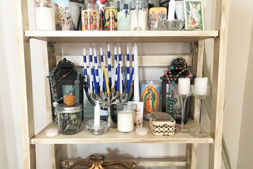 A Cross, a Candle, and a Vase of Flowers
